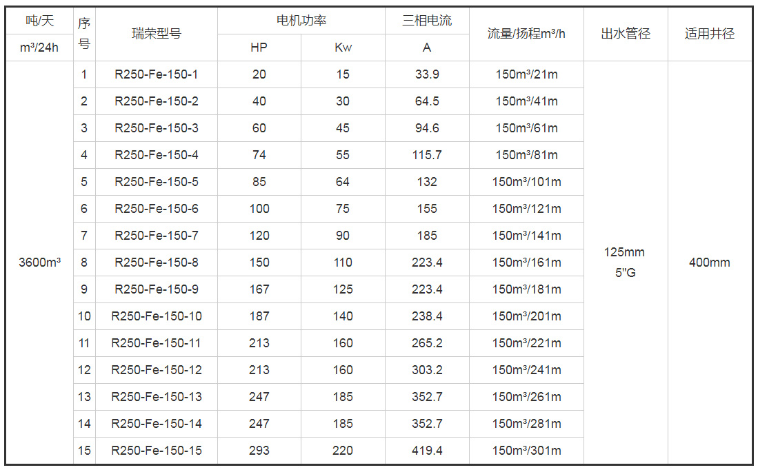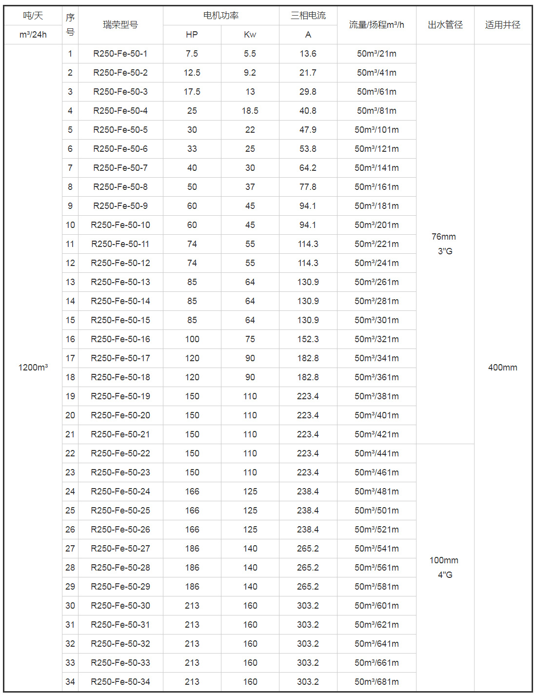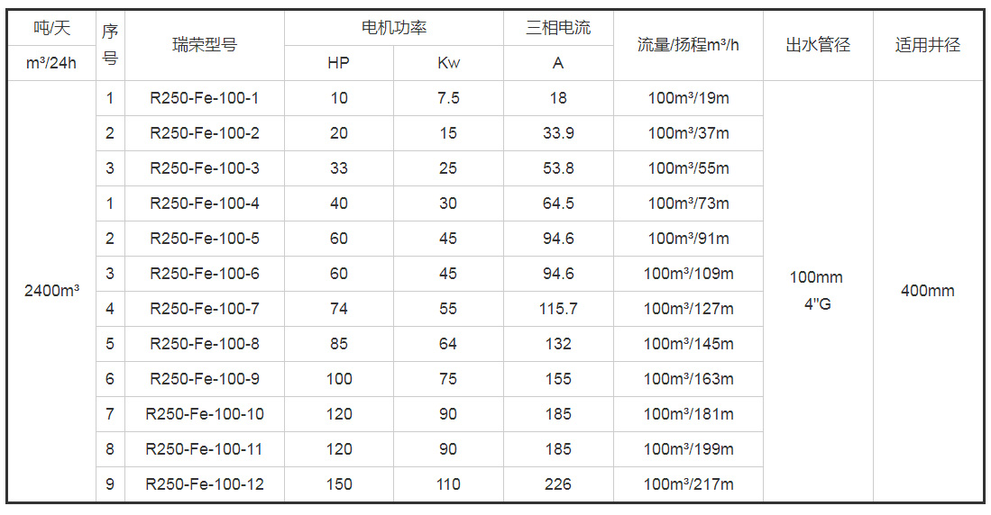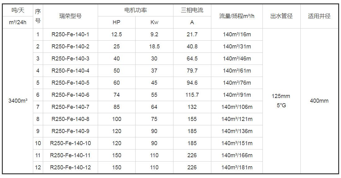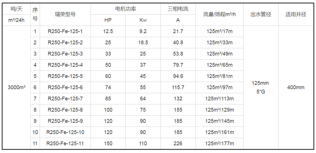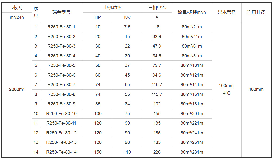 帶*號的型號為10寸(R250)泵配8寸(R200)電機