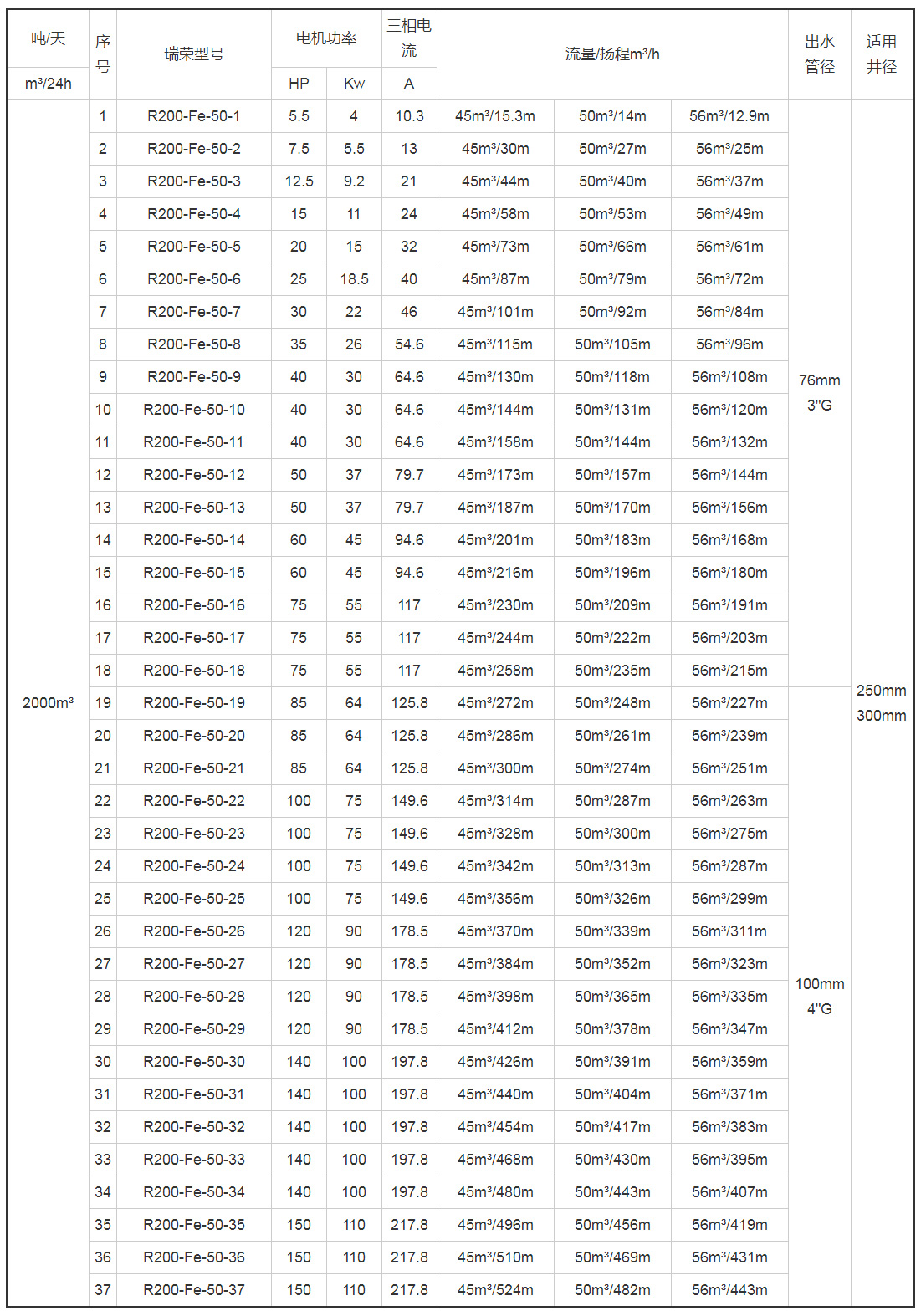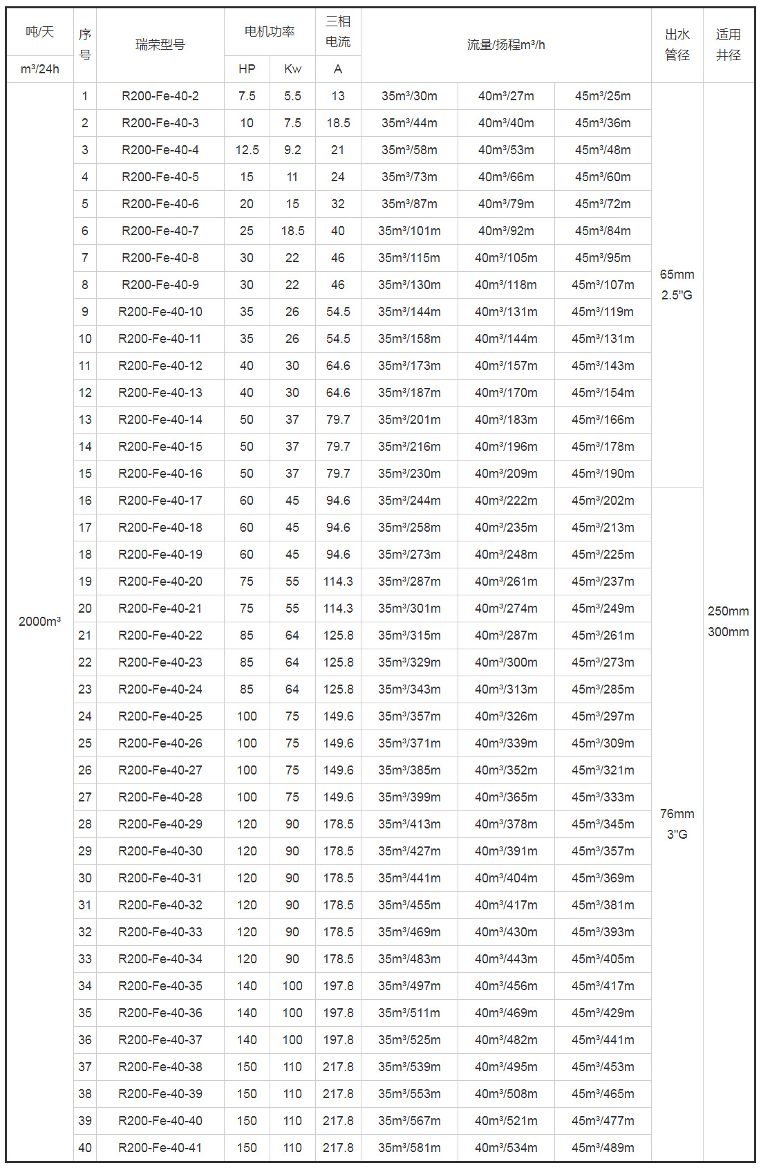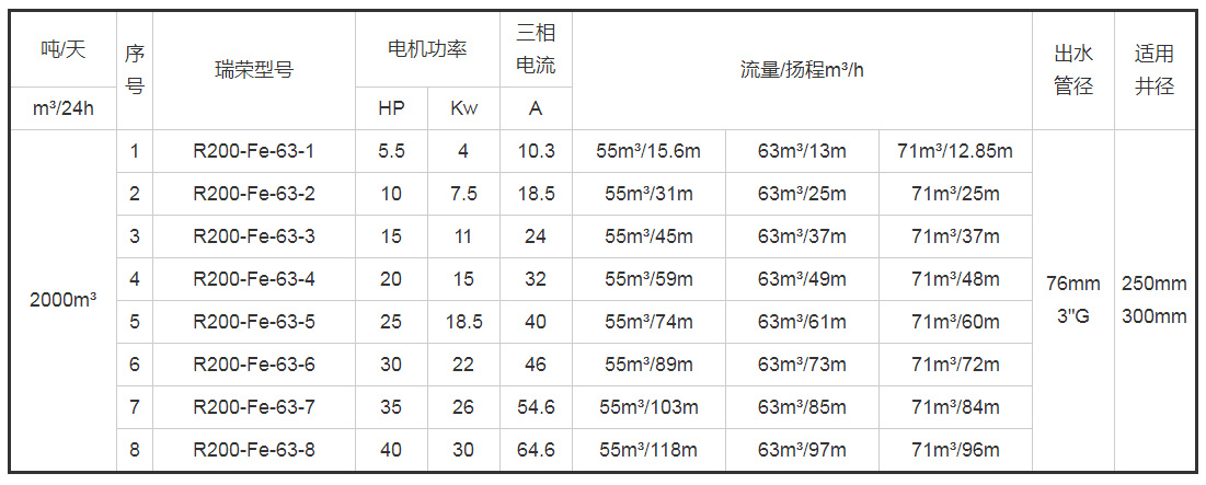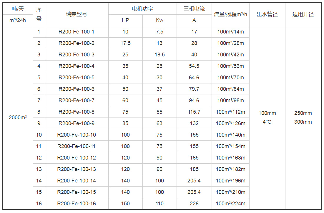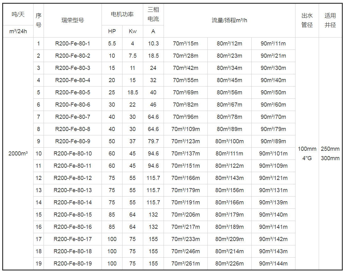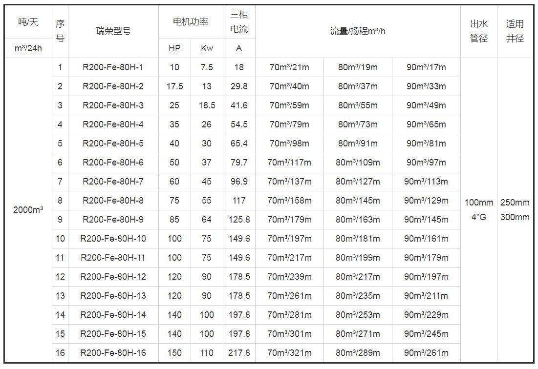 帶*號(hào)的型號(hào)為8寸(R200)泵配6寸(R150)電機(jī)